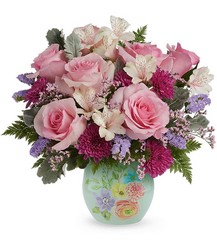 Make Mom smile with the Dream in Bloom Bouquet, a lovely blend of pink and lavender blooms beautifully arranged in our Watercolor Garden Vase. This heartfelt Mother's Day surprise brings soft spring color and a keepsake she'll enjoy.